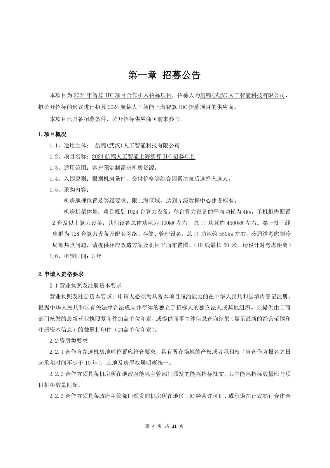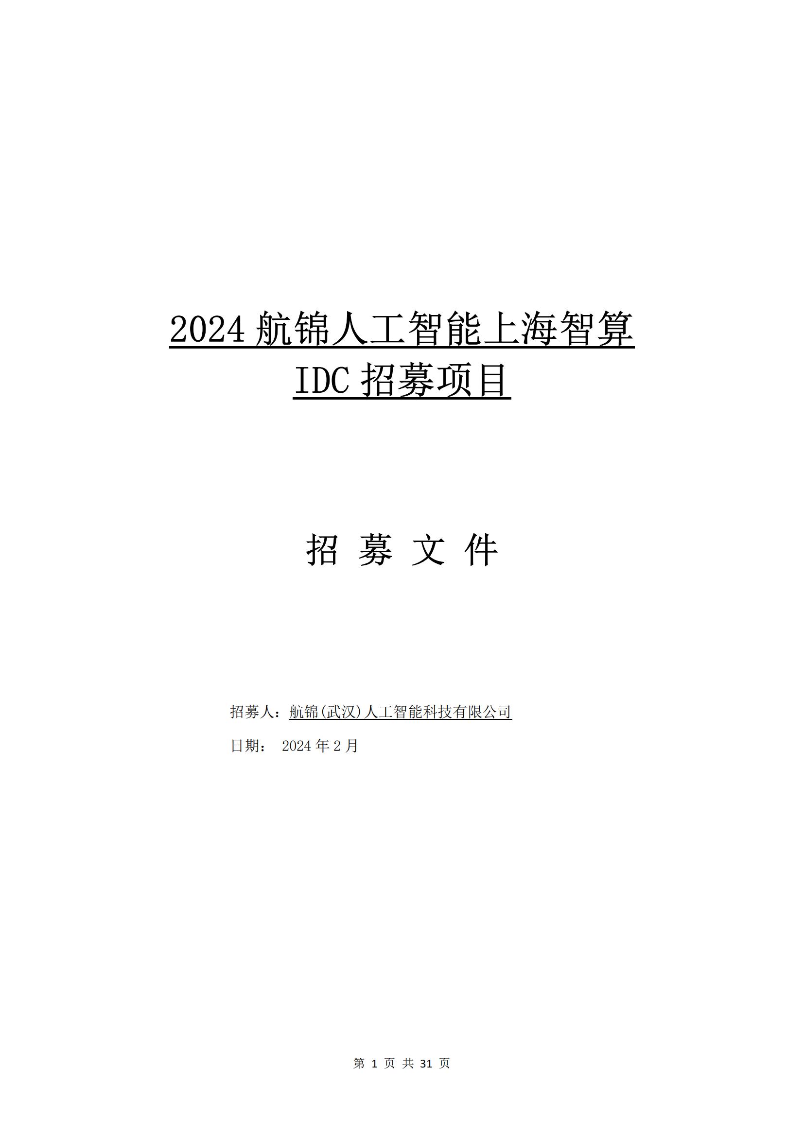 2024 航錦人工智能上海智算 IDC 招募項(xiàng)目